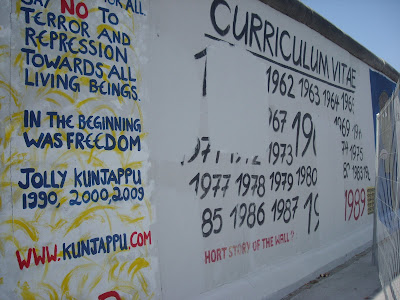 270 o 136 , según distintas fuentes y causas, murieron al cruzarlo.Las imagenes forman parte de lo que se llamó "la revolución silenciosa", que se puede ver en una exposición en Alexanderplatz.Esta exposición retrata los 20 años de historia del muro que dividió Berlin en dos partes. Es una exposición al aire libre, con motivo del vigésimo aniversario de la caída del muro, con vídeos, fotografías y objetos utilizados por los disidentes.